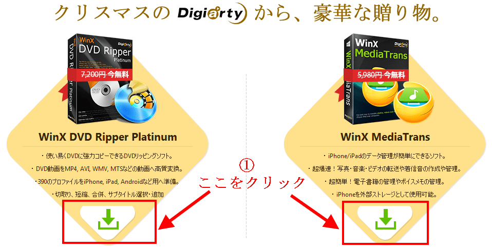 クリスマスと新年に近づくにつれて、Digiartと各6メーカーは超豪華なクリスマス&新年キャンペーンを企画されて、DVDリッピングソフト(WinX DVD Ripper Platinum)、iPhoneやiPadのデータ管理ソフト(WinX MediaTrans)、HDR画像処理ソフト(HDR projects3)、データの移動ツール(Todo PCTrans Pro)、データ復旧ソフト(Any Data Recovery Pro)等、合計7万円以上のソフト&アプリを無料で提供致します。無料配布は先着順となり、無くなり次第終了となるので、見逃すと損!